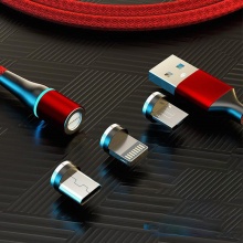 跨境外貿爆款磁吸數據線旋轉5A快充亞馬遜速賣通特銷三合一數據線