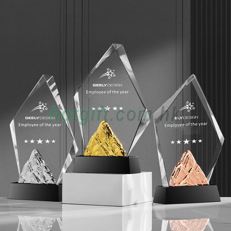新款水晶獎杯公司優秀員工年會比賽榮譽頒獎金銀銅團隊合作紀念品