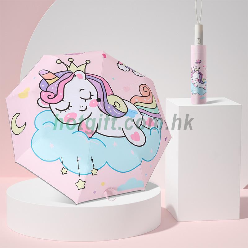三摺傘,收傘方式:自動;打開方式:半自動,8骨 ,傘柄材質:塑膠。360。傘邊反光,護航天使環,給孩子出行多一份保障。晴雨均可使用。
