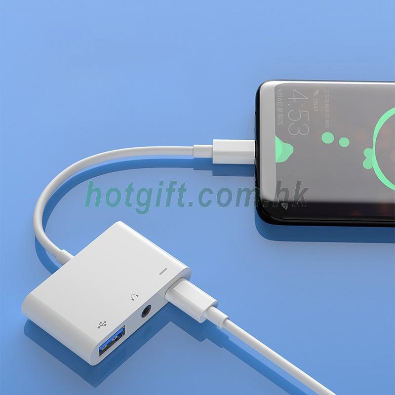 三合一otg轉接頭適用蘋果type-c轉接線讀卡器轉3.5usb音頻通話U盤