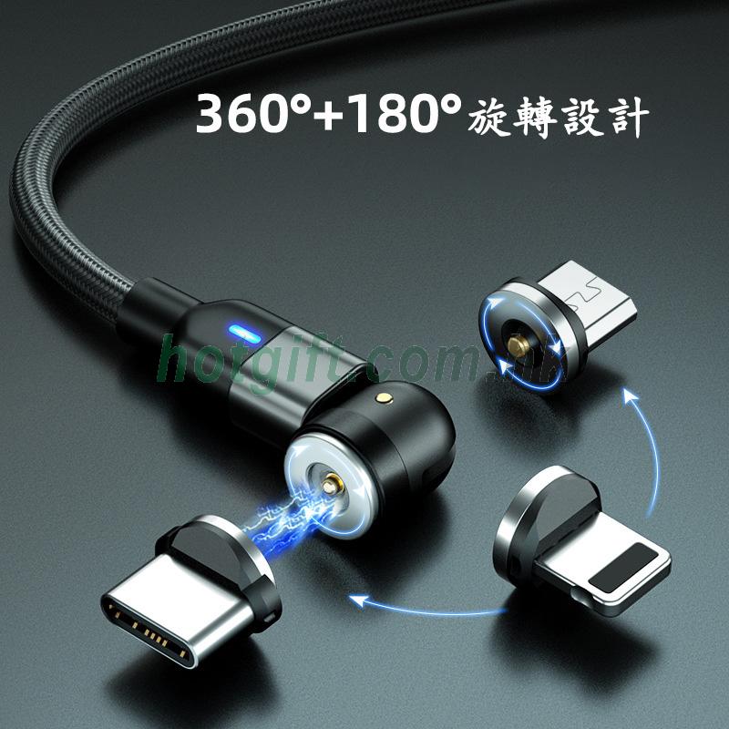 跨境Type-C磁吸數據線540度轉換頭旋轉磁吸數據線強磁安卓數據線