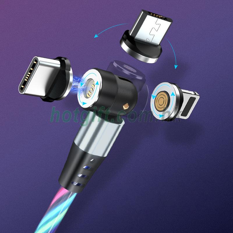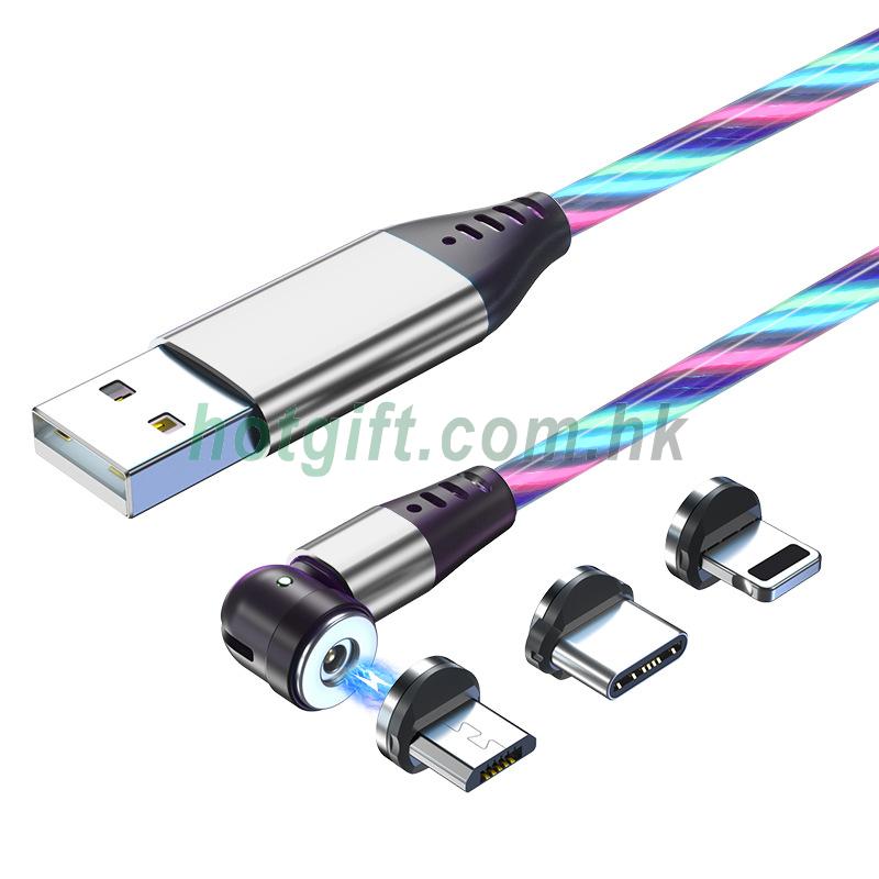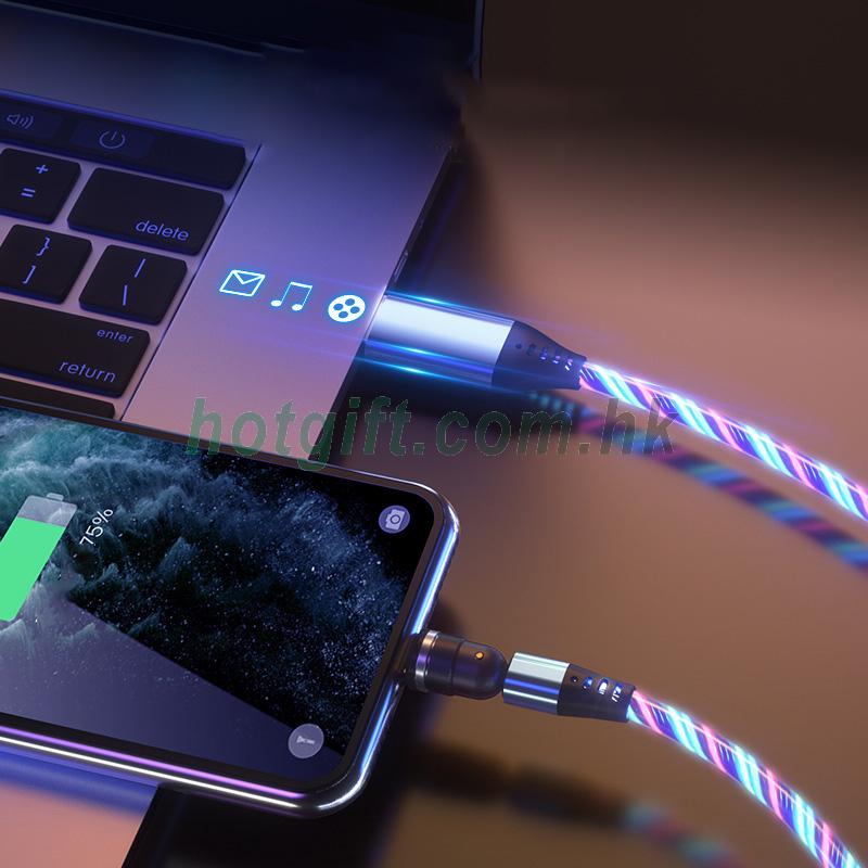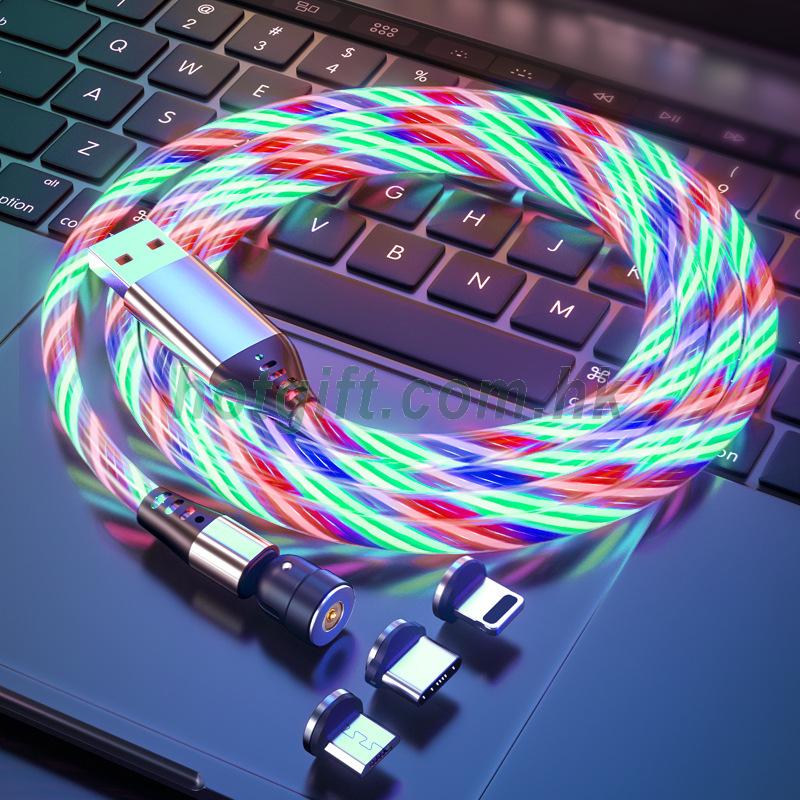 跨境獨立站亞馬遜540°快充磁吸充電線流光線可支持QC3A快充源頭